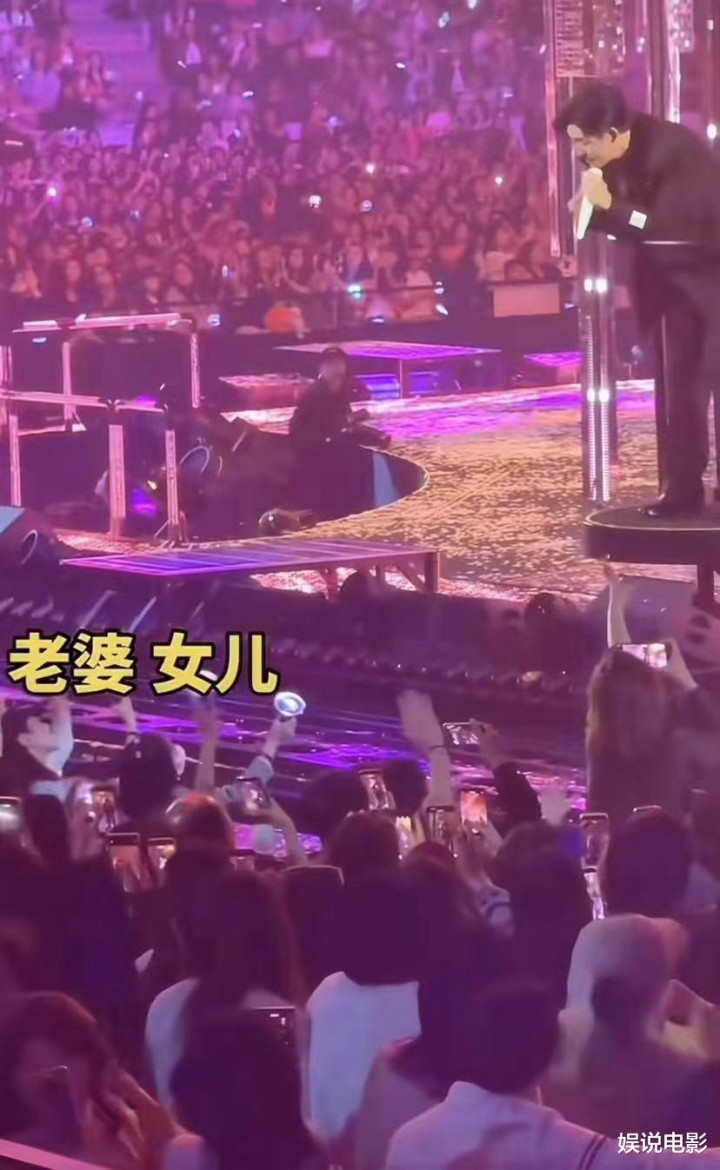 周渝民在演唱间隙,多次将目光投向观众席,眼神中满是宠溺与骄傲。当看到妻女时,他眼含泪光,这一刻被媒体解读为“平凡父亲终于获得孩子认同”的感动。